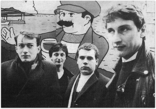 Gang Of Four (L-R) Andy Gill, Dave Allen, Hugo Burnham, Jon King. Photographed by Tom Sheehan for Melody Maker, March 1981.