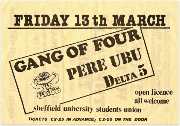Just back from a warm-up gig in Belfast, Gang Of Four are embarking on their biggest UK tour to date, promoting their out-this-week second album, ‘Solid Gold’. Having impressed fans and critics with their debut album ‘Entertainment!’ – a riveting coupling of riffs and Realpolitik – their follow-up is designed to be this Gang Of Four’s very own Great Leap Forward. They’ve signed to EMI, but are intent on subverting the system from within. I’ve bought into their revolutionary argot to the extent that buying ‘At Home He’s A Tourist’ in WH Smith’s on Fargate feels like an act of sedition.