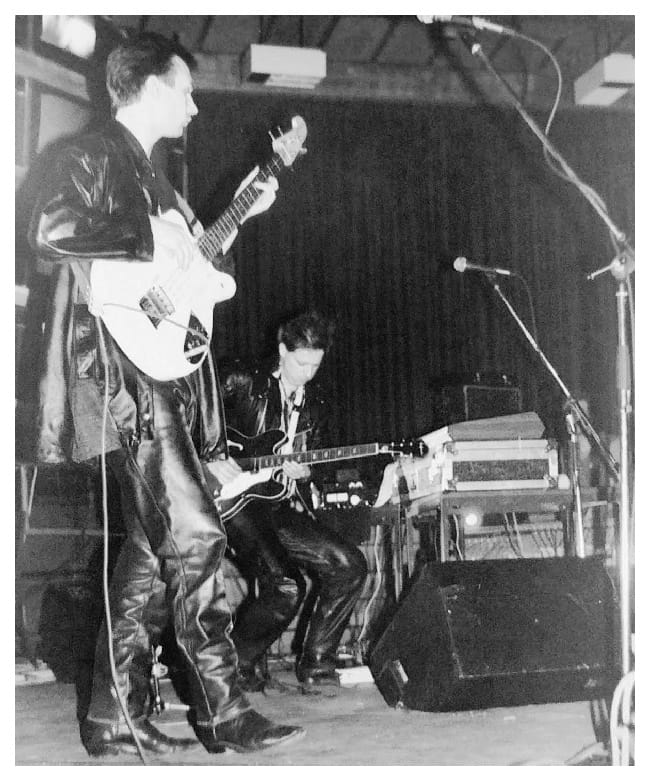 They are all wearing black leather. Leather trousers, leather bomber jacket, leather coat, leather boots. You could drive a small herd of Aberdeen Angus down West Street with the amount of hide on show in here tonight. And it’s not just the Cabs who favour this look. There’s a motorbike accessories shop at the bottom of The Moor called Lewis Leathers, and I suspect they’ve got used to a steady flow of pasty-faced, weedy-looking lads from bands who wouldn’t know a Harley from a Honda but are nonetheless ready to splash the cash to try and look like Marlon Brando in ‘The Wild One’.