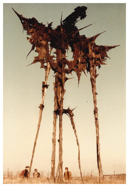 Veselý’s sprawling site is dominated by a magnificent, towering 25-foot-tall metal work called ‘Kaddish’, which he has brought home from Ostrava, where it faced demolition. A bewildering fusion of Ted Hughes’ ‘Iron Giant’ and H.R. Giger-style spread eagle wings, this metal monster appears to hover over the surrounding fields.
