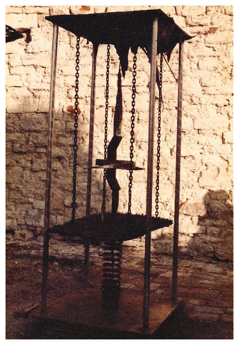 The artist works with metal, wood, stone and found objects, using an acetylene torch instead of a paint brush. And while no other pieces in his yard can match the sheer size and awe of ‘Kaddish’, he’s not a man who goes in for anything less than larger than life. Giant stone hands, bizarre sculptures that are part musical instrument and part instrument of torture. He allows the weather to add the final elemental coat, accepting that oxidation is part of the process.
