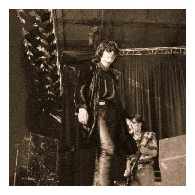 Things are running heroically late. Echo & The Bunnymen were listed as going onstage at 6.30pm, but it’s nearer to 9 when they are finally ready. Somewhat drunk and feeling cocky, showing off in front of Terri, I lead my little gang down from the VIP lounge, waving my precious pass at bored, tired security staff until we find ourselves at the monitor mixing desk at the side of the stage. A couple of hard “who the fuck are you?" looks from the Bunnymen’s roadies reminds me that these people are actually working and can do without a pissed-up ligger getting in the way. Don’t be a knob Rog. I sheepishly lead Terri, Angela and Steve out into the stands, where we find a good vantage point to watch the band.